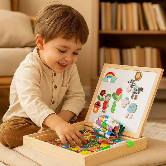 Magnetisk pusselbräda för barn | Kreativ inlärningsleksak med funktioner för ritning och formmatchning
