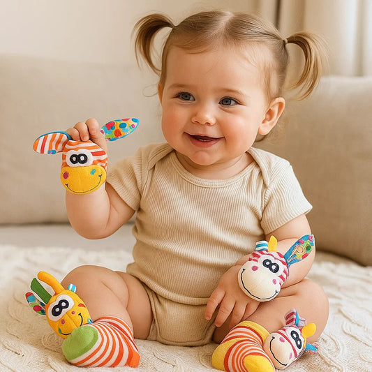 Baby skallra handled och strumpor | Färgglada sensoriska leksaker för tidig inlärning och motorisk utveckling