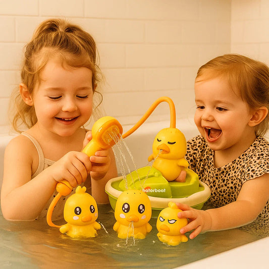 Badleksaksset för barn | Roliga vattensprutande ankor med motorbåt för interaktiv lek vid bad