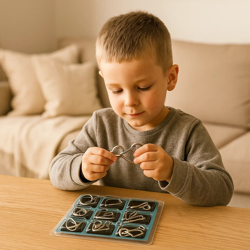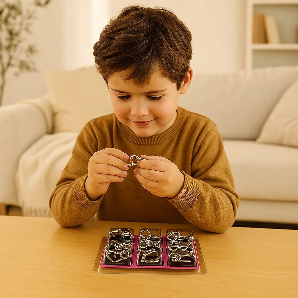 Detta metallpusselringset är designat för att ge timmar av hjärngympa och underhållning. Genom olika former och svårighetsgrader utmanas både nybörjare och erfarna problemlösare. En rolig och lärorik aktivitet som kombinerar lek med mental träning.