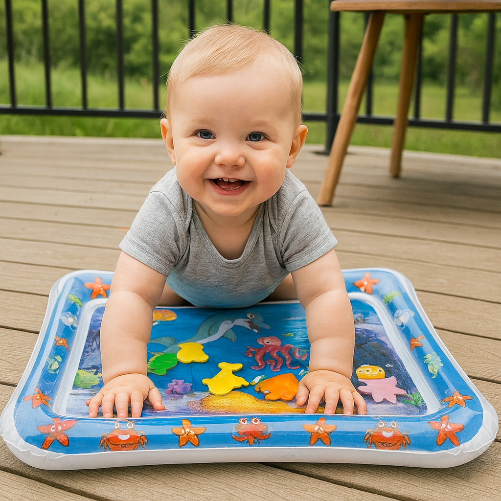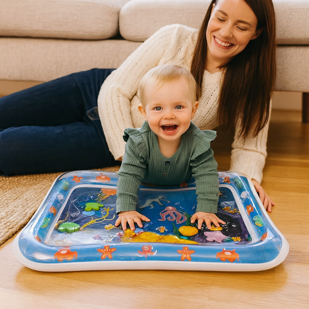Magträning hjälper barn att stärka nacke, axlar och armar – ett viktigt steg innan de lär sig krypa, sitta och gå. Vår vattenmatta gör magträningen rolig, säker och stimulerande, vilket uppmuntrar ditt barn att stanna längre på magen.